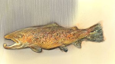 A study of emergence through body, space, and time, where a mullet underpainting supports the tarpon above—gesturing toward future pursuit and movement.